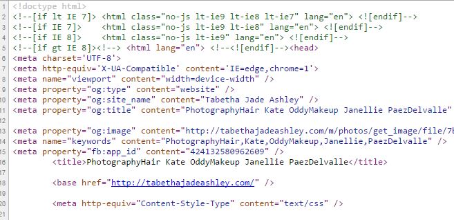 This is the page source, what FB would see. The meta info looks much better and FB likes it this way.