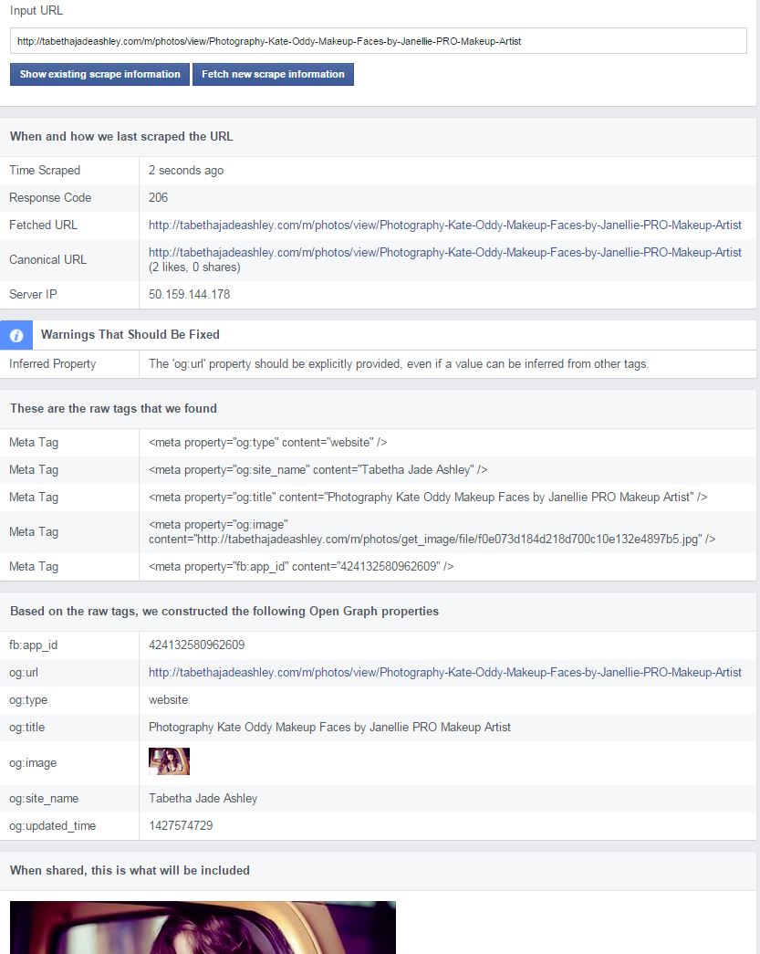 Put this URL on my site into facebooks debugger. http://www.deanbassett.com/m/photos/view/16552-175485159741-3929411-n-jpg or any other photo URL on my site.