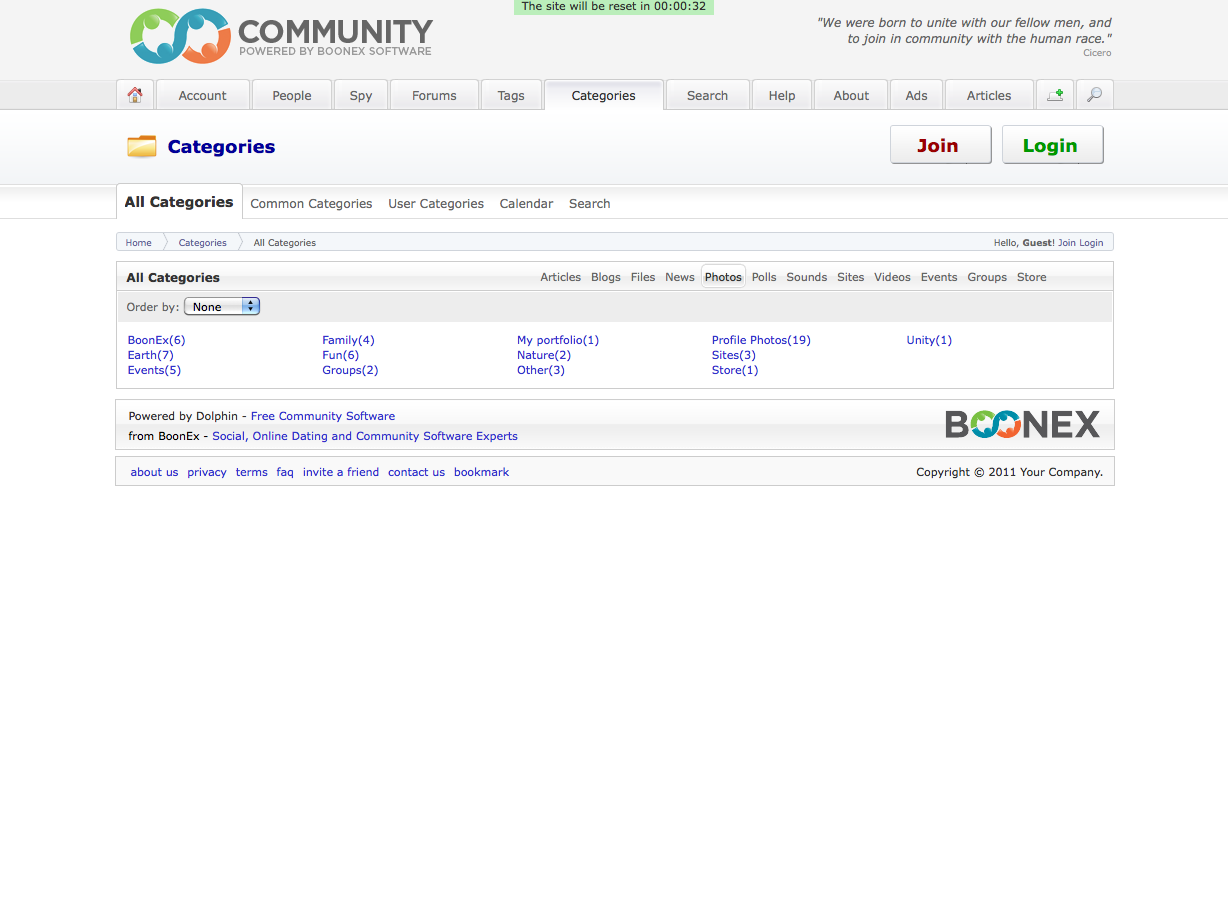 As you can see, not ALL categories are listed in the box titled "All Categories" - the easiest way to see this is that the "Common Categories" section has categories that aren't listed in "All." You can also see that it is failing when you look through each upload in the module section and see that there are categories missing. Or look directly at what is listed in "All Categories" directly under the Category section. For example, if you look at the Category page for photos (here-click the Photos submenu to see) you will see far more categories listed than on the category page on the Photo module (here). These pages should have identical lists of categories, they do not.