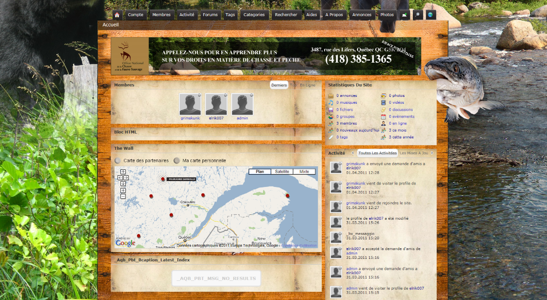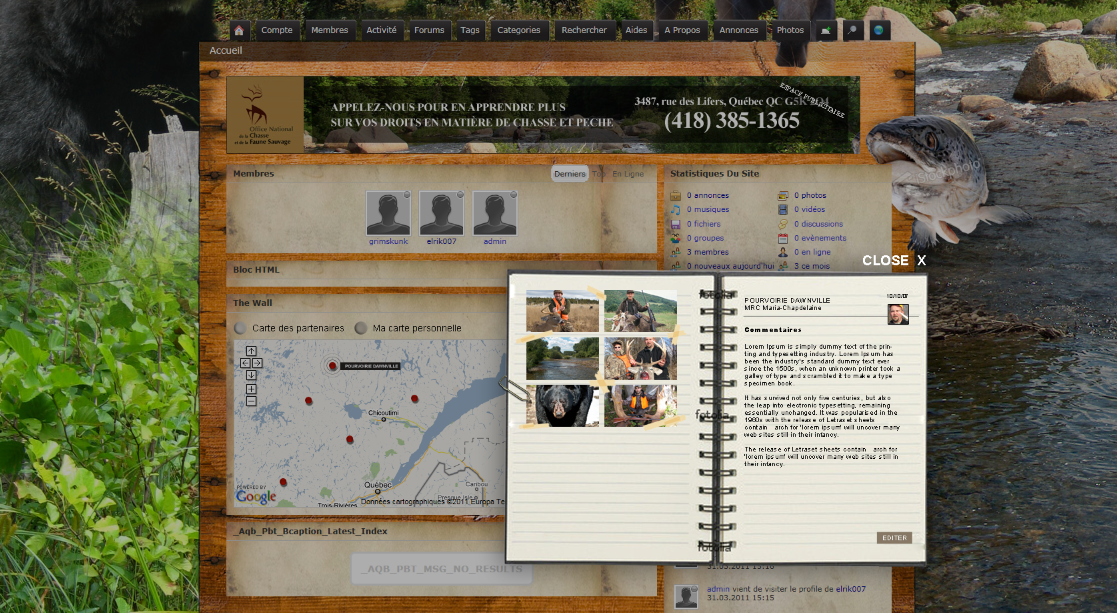 the member can access his map module on the homepage of the site and in its profile section