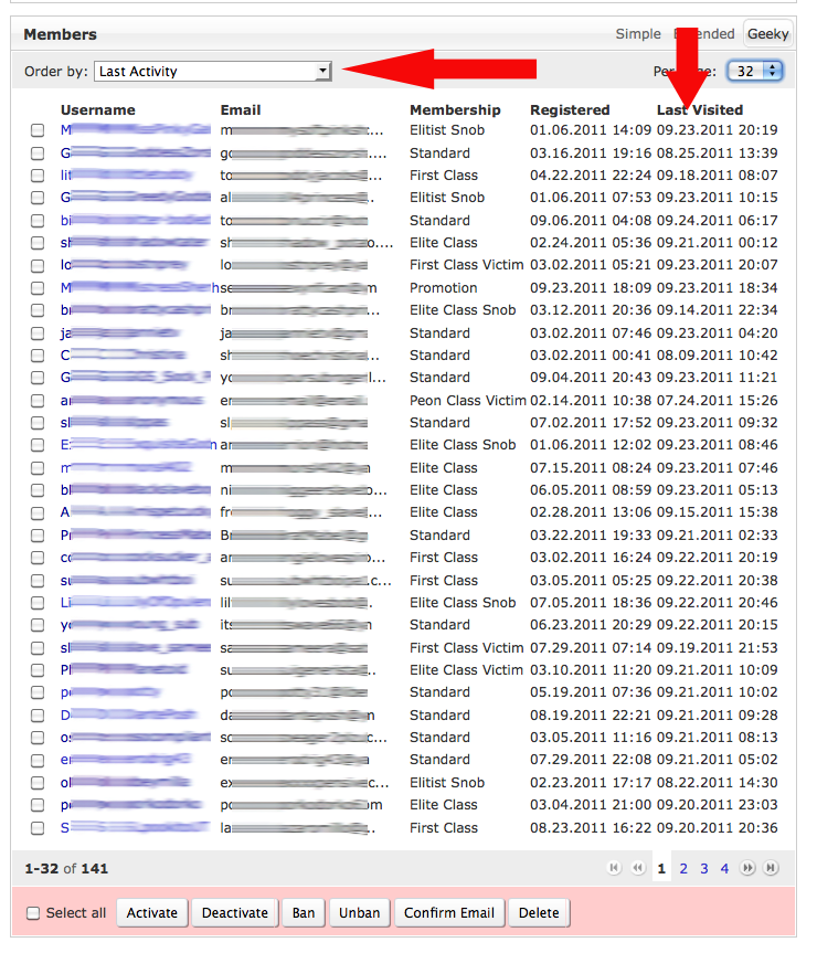 In fact, if I order the users by Last Activity in the Admin>Members section - or in the browse.php page, it's the same list - the dates show up most noticeably wrong in the "last visited" column: