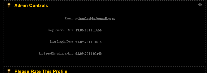 Here are screenshots! The admin log and the profile log are the same - and both wrong. You can see how jumbled and not in order the dates listed are. The odd thing is that the order is correct, this is the list of last visits - I've checked and watched and monitored it to see. But the dates listed are crazy random and bear no relation to when they've actually last visited. I looked at the first really glaringly wrong date - the member who is listed as having last visited on 9/14. And here is the Admin Controls from that members' profile - you can see that the Last Login date is wrong here, as well. The really weird thing is that it shows Last profile edition date (yet another language key that is so effin' awkwardly worded that I don't even know what to edit it to - does this mean the last time the profile was updated?? A separate rant, but if anyone knows that would be helpful, too!) was today - yet the login date is 9-14-2011.
