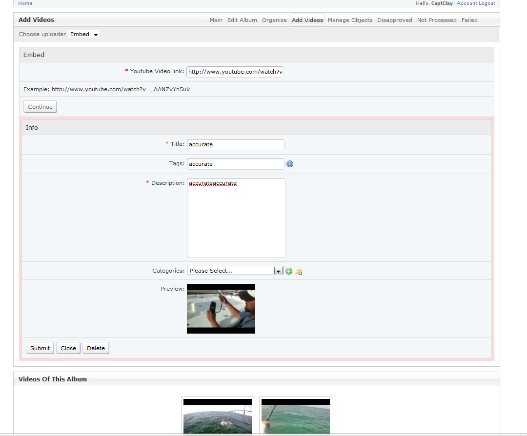 Okay... i just removed the file and I got the message that said, "video upload failed" again. So, maybe it something to do with my server. All I know is this... With new file = no go (no matter what permissions I use on it) With old file = works (only with permission set to 777) Without file = no go I don't claim to understand why it works like this and I understand your argument that ffmpeg.exe shouldn't have anything to do with embedding videos in the video section. I'm absolutely positive that you know more about that stuff than I do. But what am I to think about the results I am getting? I think I'm not going to think to much about it and just go with what works. |