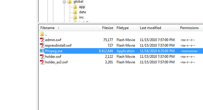 Hello! Ffmpeg was upgraded too, so check permissions for flash/modules/global/app/ffmpeg.exe, should be 777. Also need to change this file if u have Windows server. Regard |
