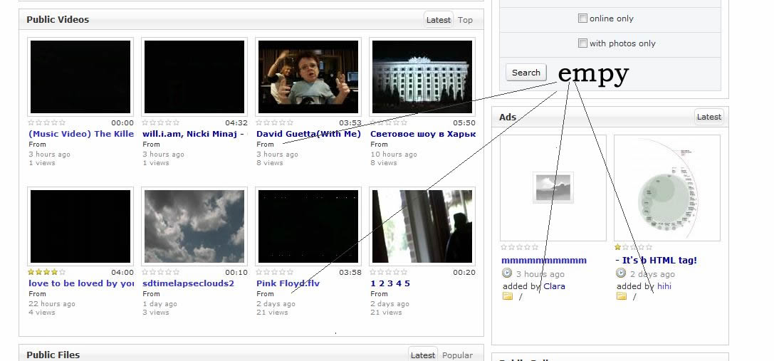 - Events - photos - videos - sounds - group - store -- From - is empty