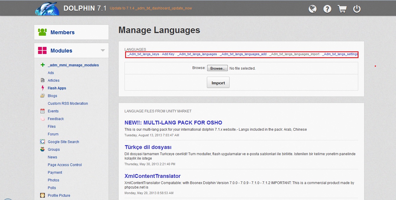 Ran 7.0.9 to 7.1 upgrade instructions to the letter but have issues with the language keys. Was unable to compile the default language file during the manual part of the upgrade, leaving lots of new language keys (instead of the strings) displayed all over the application and admin interfaces (see attached images). The only language file which could be compiled was my language file created to correct English errors in the default language file. The default English language file isn't listed for selection in the Language Settings for compilation.