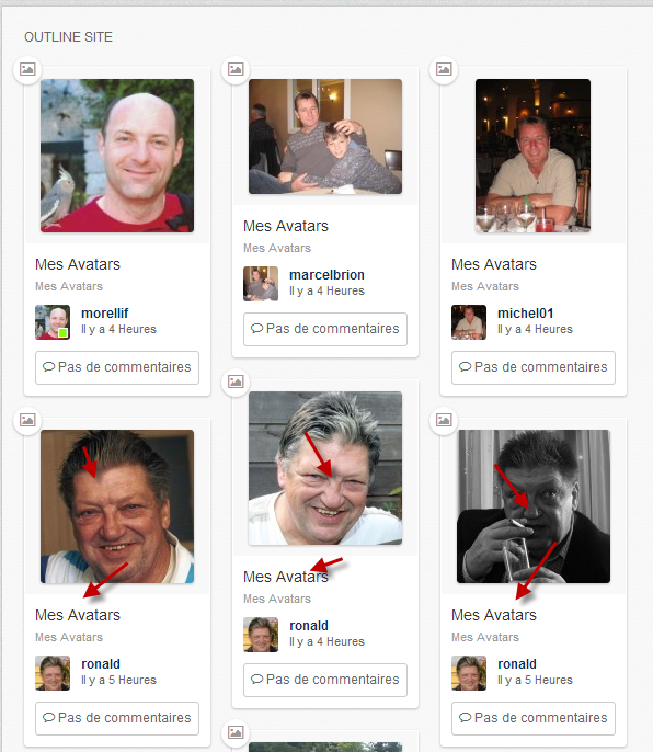 Uploaded photos are not as grouped in the same tiles on the outline, but every once in a separate tile. If a member downloads 10 avatars succession it takes a lot of space on the outline ... Baloo |