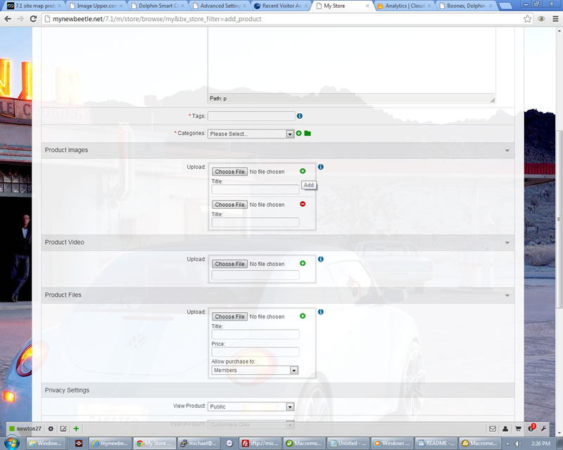 could you post a screen shot of my site with you adding a product to store? ManOfTeal.COM a Proud UNA site, six years running strong! |
