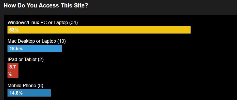 I maintain (not own) an Adult site in Australia and we have a survey on the front page asking our members how they access it on a regular basis. Of the 800 plus members, only 54 have bothered to respond. (See attachment)