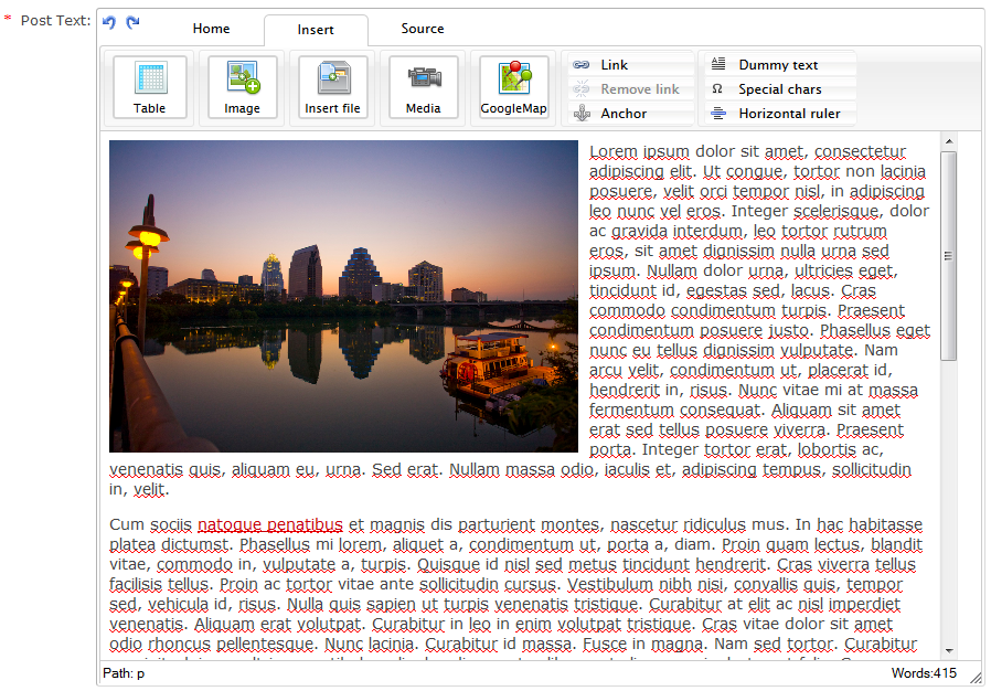 Don't give me too much credit. Much of this work was done by a guy in Netherlands, but it does not seem to be under any active development for over a year. It had a lot of bugs that needed fixed, but I'm gradually getting them resolved. I'm working on a site, where user contributed writings will be a primary focus, and wanted the editor to be easy to use. One important thing to note, is that all this comes at a cost. Moxiecodes MCImagemanager and MCFilemanager plugins will cost $100 US, and AndrewP's integration will add another $20. If you want to build a site where users are encouraged to submit content, I believe any money spent towards making content contribution a more enjoyable experience for your members, is money well spent. If that process is tedious and confusing, no one will want to deal with it. What this Theme does, is assign big buttons for all the most important layout features... all the things that you need to easily do to create good looking documents. Easily uploading images from your computer, inserting them into your document, and easily resizing them and aligning them once in your document, is one thing this theme and the Moxicode plugins is better at. Inserted tables will already be styled to fit the template colors, and I'll have some predefined styles that users can apply to text and other elements via a drop down selector. The Google map plugin was a good find... users can insert a google map of a location, set the size, and zoom level. If enough people are interested in this, I might consider putting a Dolphin ready product in the market that included the Moxiecode MCImagemanager and MCFilemanager plugins. I would have to commit to a $1200 Enterprise license to do so, and won't do that if interest is small. It would also have to bundle AndrewP's integration. Even if that doesn't happen, or isn't viable, you'll still be able to purchase all the plugins on your own, and put it all together. My opinions expressed on this site, in no way represent those of Boonex or Boonex employees. |