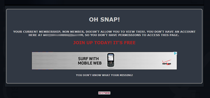<h1>Oh SNAP!</h1><br><div style="width: 100%"> Your current membership, NON MEMBER, doesn't allow you to view this!<b>{1}</b>. You don't have an account here at [YOUR SITE NAME HERE], so you don't have permissions to access this page. <a href="http://www.YOURSITE.COM/join.php" target="_self"><br><h2>Join up today! It's FREE</h2></a></div><br><div align="center">