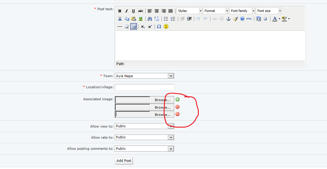 My standard members can only post one photo and the admin can post up to 12 as I have set to. Its a bit strange because the standard member does not see the plus symbol photo near the image browse button but the admin does.