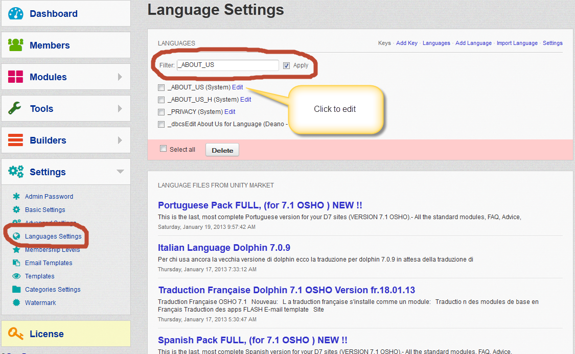 Where is the language file in 7.1 that I can change the following text: "This site is powered by BoonEx Dolphin. The rest is a mystery." ? I do have a full license. I have found three 'about' language files and none contain this text. Any help is appreciated.