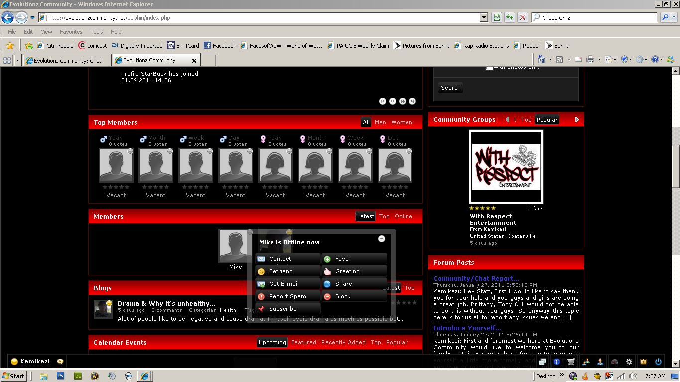I added a few Screenshots of whats happening with a test account I made called "Mike", which is the 1st screenshot. The 2nd screenshot is me logged back in on my Admin Account showing you that there is 2 accounts on the site right now but no accounts other than the admin account can login. Owner/CEO NetSocial Incorporated |