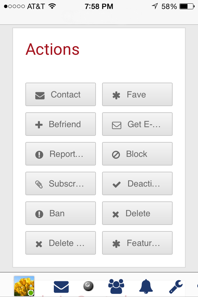 OK, here's a screen shot of my actions block on the iPhone as it appears directly below the profile cover.