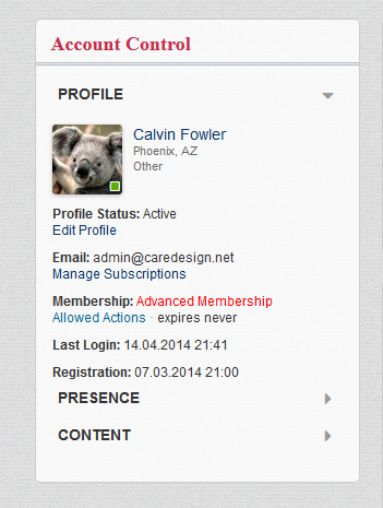 Presently, member.php page shows the 'Quick Links' block followed by 'Mailbox' block.