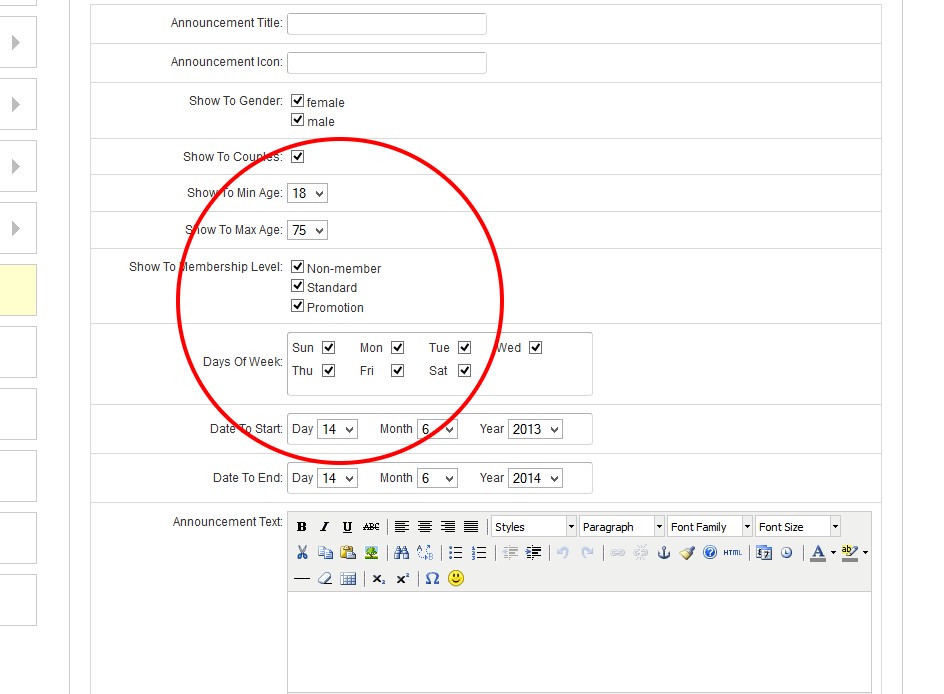 Is it possible to disable all of restrictions and show the announcement to everyone whether they are member or not? Some of my members do not feel comfortable showing their age and I'd like all members to see the announcement.