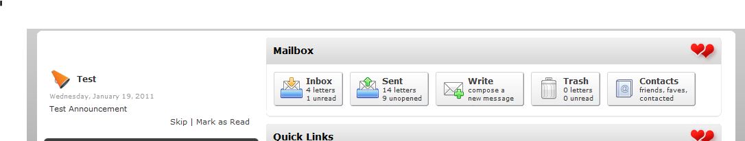 5. Once all announcements have been either skipped or marked as read, the block is hidden from the page.