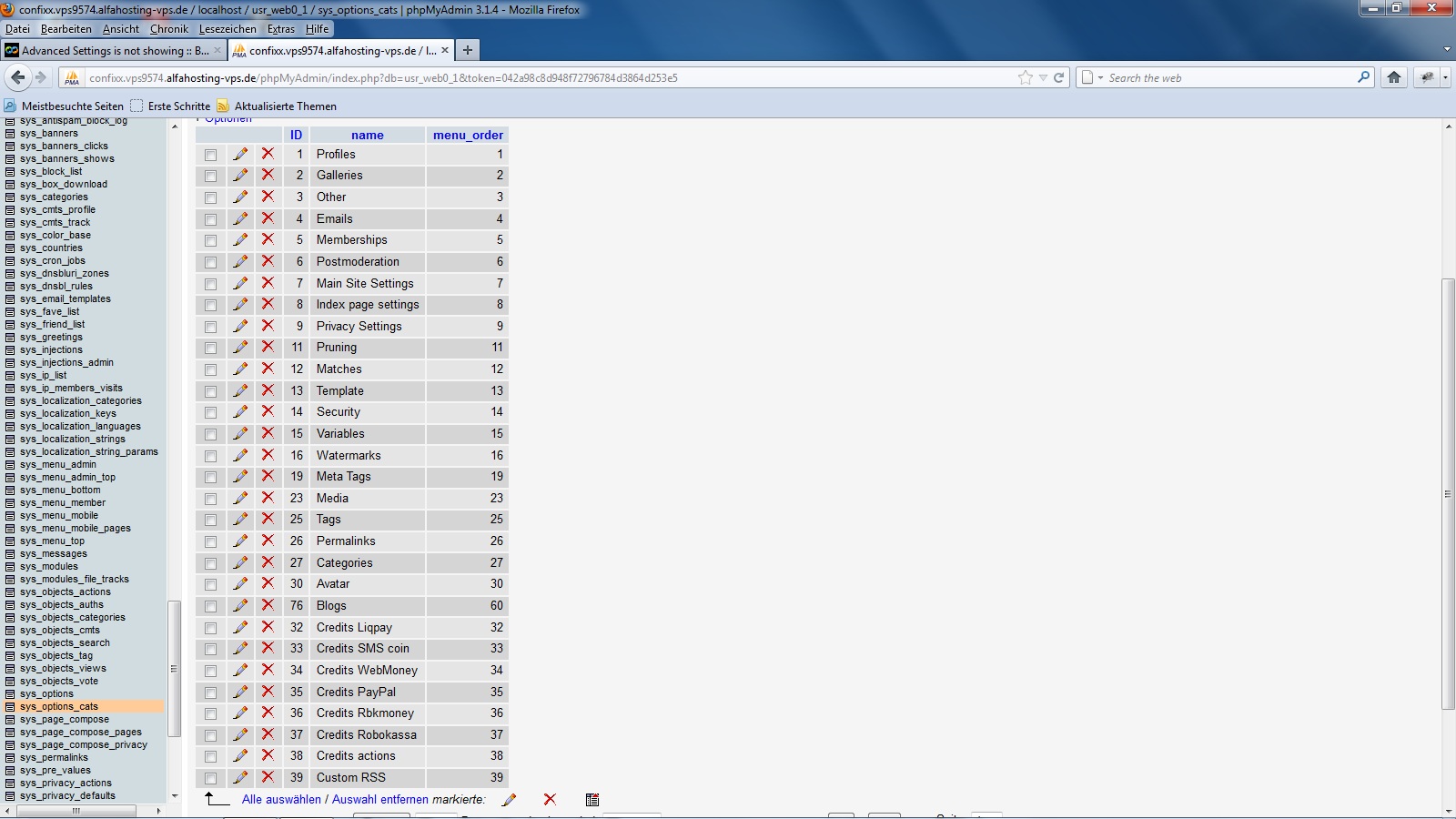 Is this a new installation? Check your sys_options_cats and look for profiles with id 1. Is it there? Or better attach a full screenshot of table's rows list. so much to do.... |
