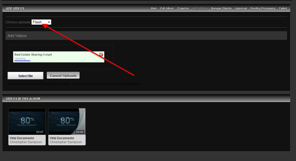 1)If you have problems with the flash uploader, we recommend that you use a regular uploader. no video uploaded