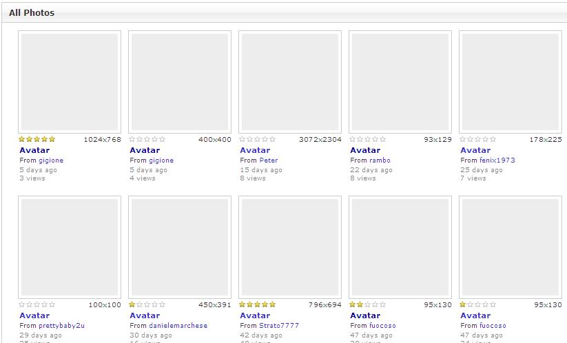 If I am a guest or member (friend or not) I see all photos grey. But, if I am the administrator, i see all photos. All photos were visible before the upgrade. Are public photos and approved photos.