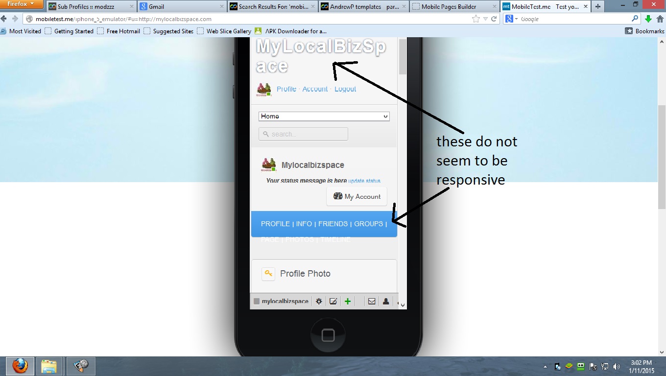 Also noticed that the menu in profile or the logo dont seem to be responsive see screen grab |