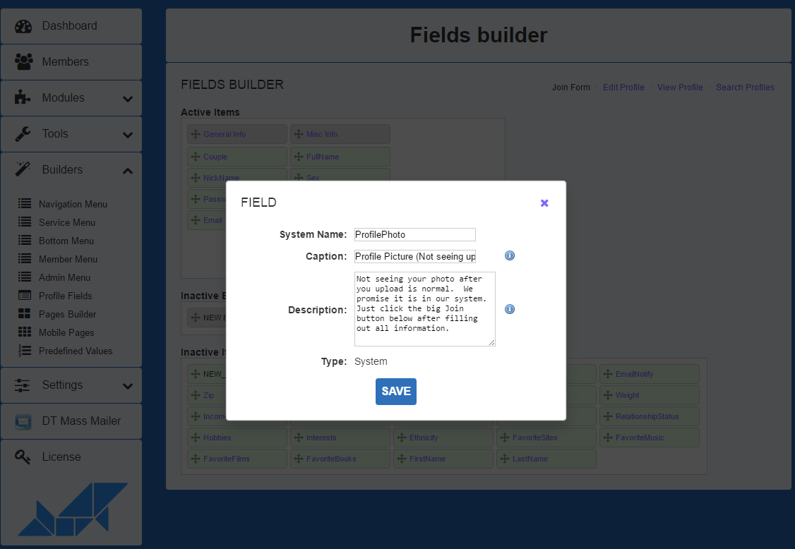 Admin > Builders > join form