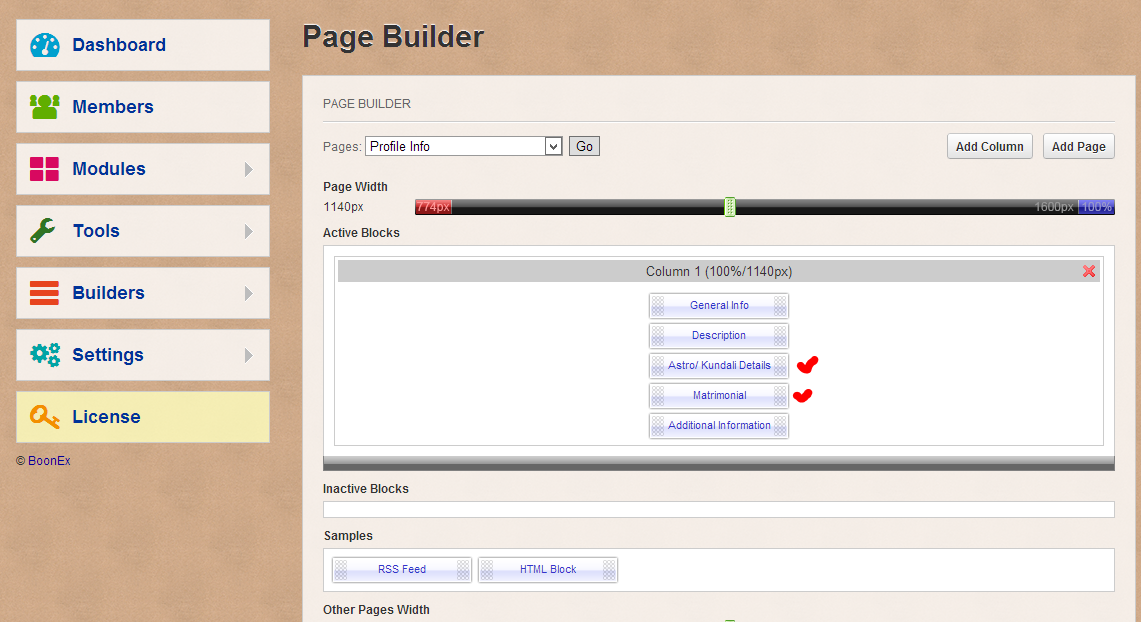 I added the blocks, but when I go to the Profile info page in the front, I don't see any blocks. I tried viewing as a visitor and as a user. This is the profile info for one user. http://premnagar.com/profile_info.php?ID=1