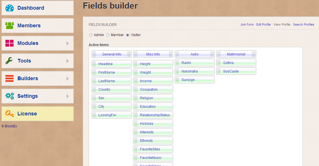 This is my first try with Field Builders etc. I went to Field Builder and create two blocks and then added some new items. Then I went to Page Builder and selected Profile info page.