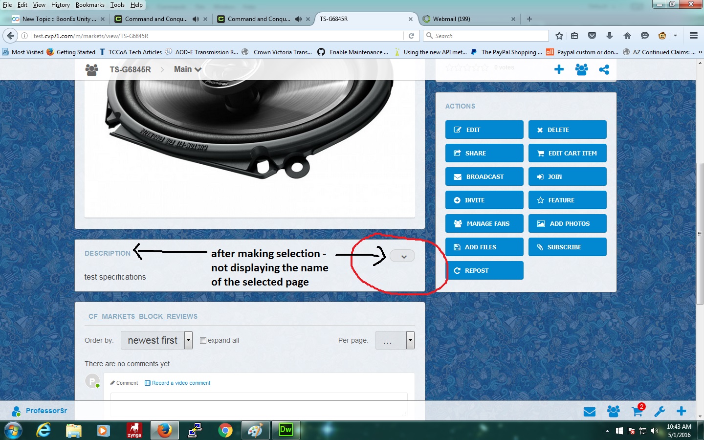 After making a selection - proper info is displayed, but still no name in the menu of the selected page