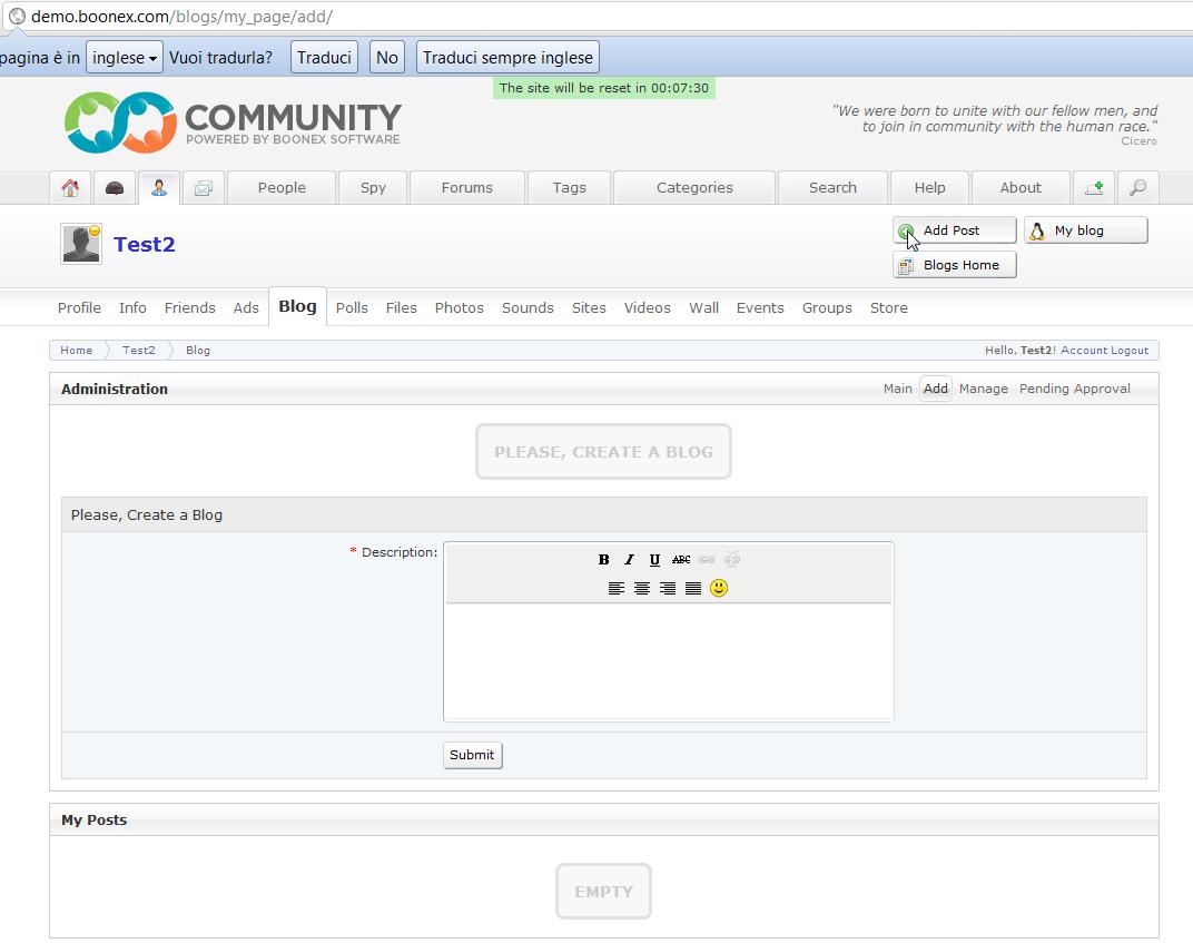when a user posts the is first blog, after pressing add post..