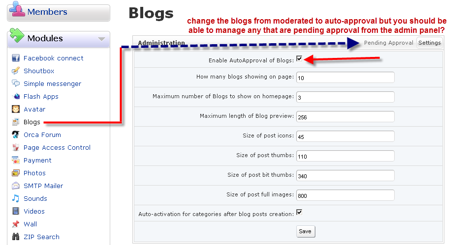 I am having trouble getting my blog block to appear on one of my sites. It is an older project I set aside for a while, and I noticed I had accidentally set the blogs to moderated. I went to blogs moderation to approve the old posts I had made but it didn't seem to take. Looked at the status in the DB and it was still set to "approval" but there didn't seem to be any approved or active status - whatever the word is, that was a blank field., New blog posts don't work either, even when authorized by the membership level. It either constantly reverts to the "create a blog" section or gives a systems permission error (for the file). Multiple symptoms and its not working. Anyone have any idea of what might be going on here?