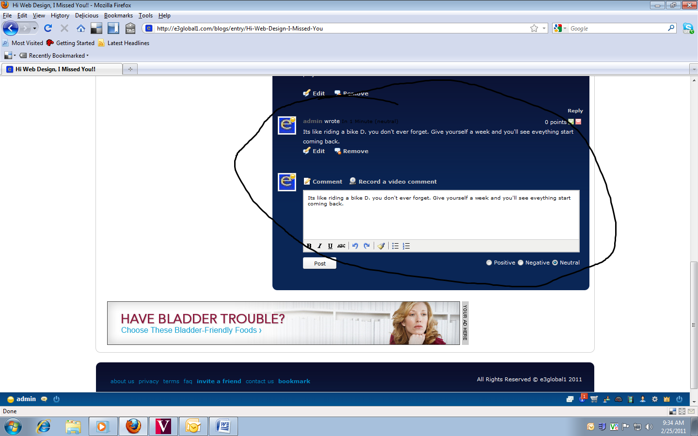 In my blog section on my site, whenever some post a comment the box doesn't become empty it still has the comment just post in it. In order to post a new comment you have to manually erase it. Attached is a pic What's that falling? its a bird, its a plane, oh wait its Facebook |