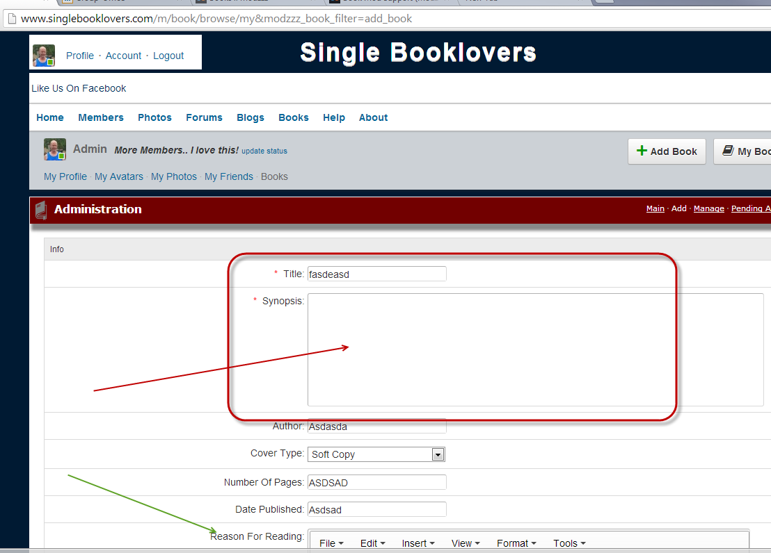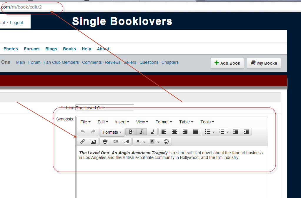 After creating a book I was not able to go back and edit the following fields. Reason For Reading Opening Paragraph Fabulous Quotes Also Recomended Also By This Author Thanks! Peer Peer L. Plaut Executive Director, Single Booklovers Connecting Bookworms Since 1970 |