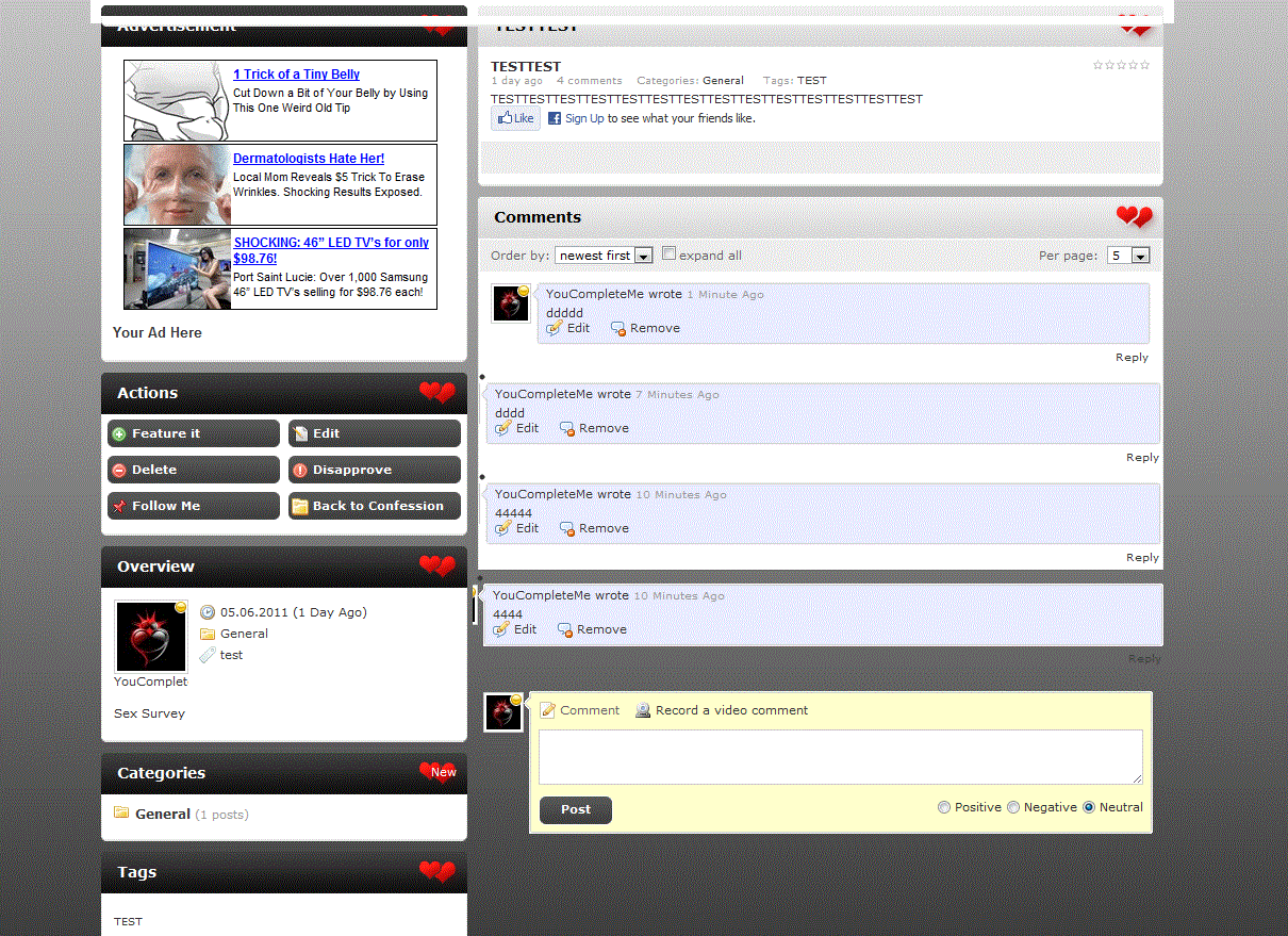I have a D7.06 website that has a custom template. The template was made by a professional and high quality vendor. I have no problems other than when I placed a COMMENTS BOX in the Blogs, Articles and Polls sections to allow members to comment on posts. The addition of the COMMENTS BOX throws the template all out of whack and doesn't allow the member to post comments (please see attached pic). When the COMMENT BOX is removed, the template appearance is fine.
