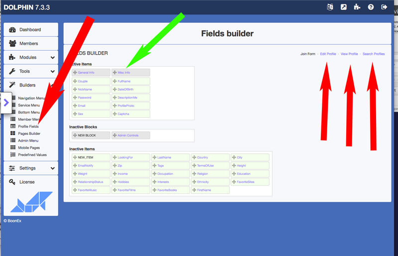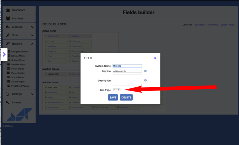 The links at the far right of the "Profile Fields" page configure your join forms:
