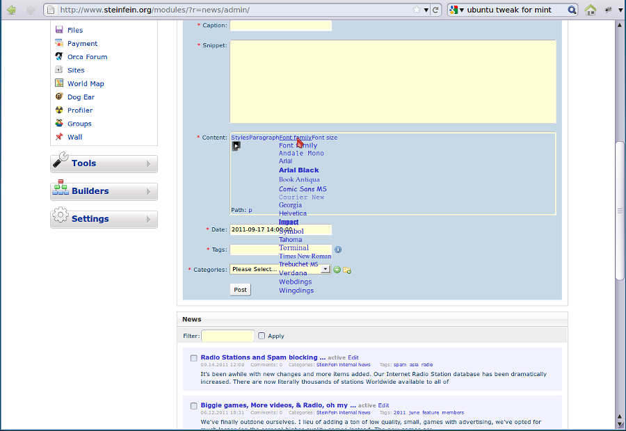 If a user tries to send a blog or if the admin tries to write some news ... this actually works, even though there's no tinymcs menu visible anymore. There are some text menu items that can be clicked on for font selection and so on, but none of the menu buttons are there anymore. All of those are who knows where ... ???