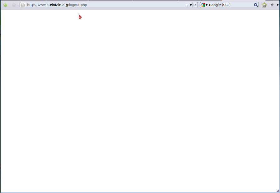 Upon logging out, the homepage no longer returns. Now there's just a blank logout screen with nothing in it. Even worse, unless you reboot the computer, that screen is kept alive. In other words, if I return to the login screen the following day, the browser page will open up with me already logged in.