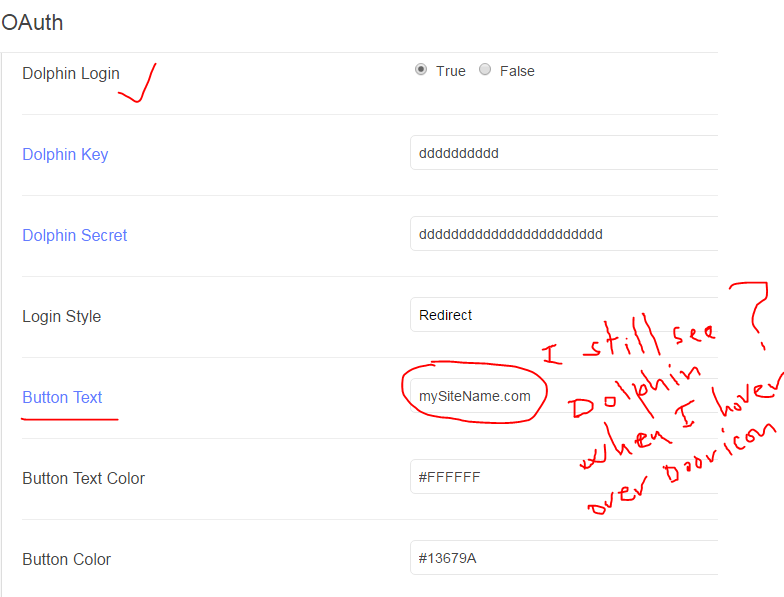 2> When I hover on the door icon, I see the name Dolphin, I do not want my users to see the word Dolphin, they need to see my site name instead..