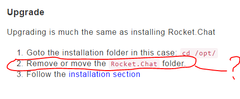 I am using CentOS, based on the upgrade instructions, it says to remove Rocket.Chat folder, (see attached) but will that remove all my custom work I did for Chat+ ?