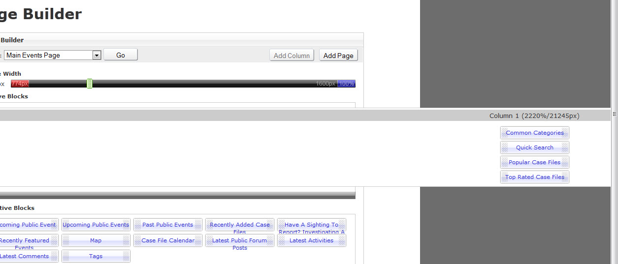 The screen shot below shows my screen, wherein the column doesn't even fit. Now, my pages are very messed up. I tried to re-upload the pagebuilder.php file, but no luck.