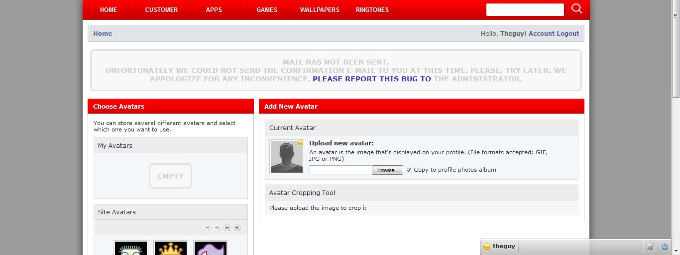 Unfortunately we could not send the confirmation e-mail to you at this time. Please, try later. We appologize for any inconvenience. Please report this bug to the administrator.