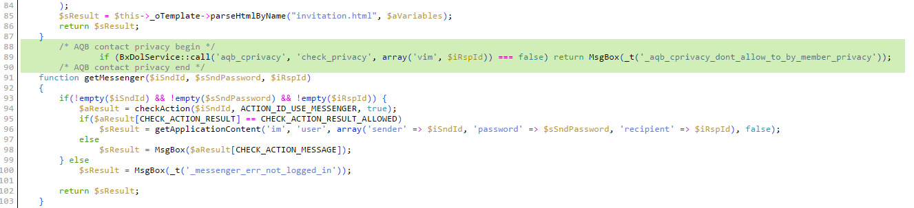 89.  if (BxDolService::call('aqb_cprivacy', 'check_privacy', array('vim', $iRspId)) === false) return MsgBox(_t('_aqb_cprivacy_dont_allow_to_by_member_privacy'));