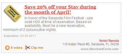 I thought about this some more. If you have a community site where you are trying to get businesses to list themselves and non-business owners to join this whole coupon mod brings them together. You have businesses posting coupons and users looking for deals.You could also rss feed your coupons to other local sites helping funnel traffic to your site. You could also feed your coupons to your facebook page if you wanted. I have had 2 local sites already offering to host our coupons, but I don't have a mod. I need a mod. Merchant Circle does this for there members it would be great if we could do it for ours. |