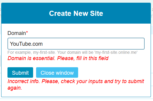 For example, my-first-site. Your domain will be 'my-first-site.online.me'