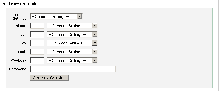 now we are going to drop down the common settings and opt for Every Minute(*****). again this is for testing purposes and running a cron command every minute is bad practice.