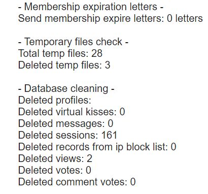 That depends. Normally your server host will have C-Panel, or if you're running on a VPS you may be using Sendora. In either case, both panels have a section for setting up Cron Jobs. Just look for . . . you guessed it - Cron Jobs. it's easy to delete or modify a cron jb, but it's probably best to delete it and start again. If your cron job is working properly, you should receive a daily report of the cron job's activities. See attachment. There's plenty written about setting up a cron job and that's another story. |