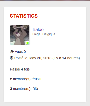 Thanks for the fixes. Everything now works without error. 1. member may pass the same test as many times as he wants, I think it would be better as a single time in the previous versions. Otherwise it will start the test to succeed and attract the attention of the author of the test. You agree with me? 2. If a member while aunt answer that does not match the criteria predefined by the owner of the test, it falls on the standard message "Access Denied." Baloo |