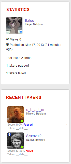 Sorry Modzzz, but now I have a mysql error when you do not pass the test successfully, and the creator of the test still can not change his test. Acces denied Baloo |