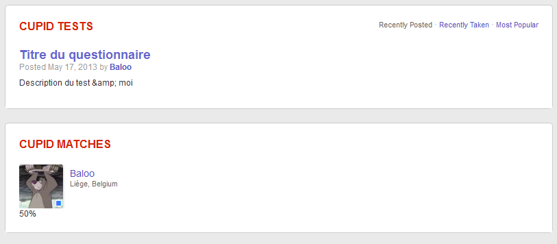 I think that there is a problem. Baloo has created a cupid test and it was his avatar that appears in cupid match and not that of the person who has passed the test successfully. Or I do not understand that thought Modzzz?